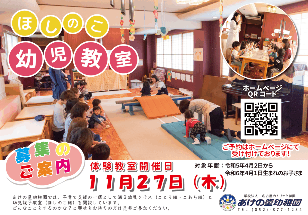 あけの星幼児教室「ほしのこ組」の体験教室を行います。ぜひご参加ください。