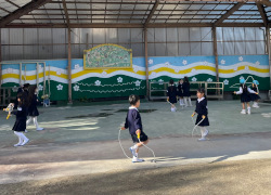 なわとびをする子たちが、