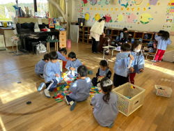 クラスを移動して、ちがうクラスのお友だち同士がいっしょに遊びます。
