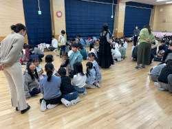 みんなくたびれてないかな?と、お部屋をのぞいてみると、子どもたちや紙芝居や絵本でお話を読んでもらっていました。