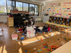 年少組さんのお部屋をのぞくと、いつもと少しちがう雰囲気です。